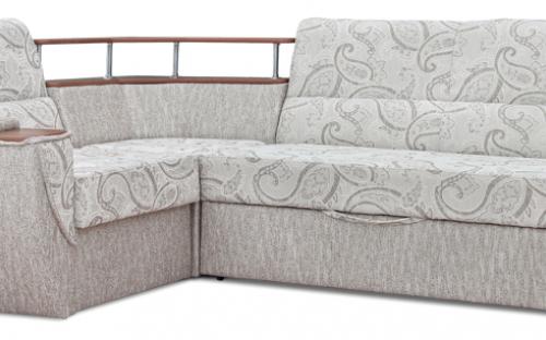 механизм трансформации: "Дельфин"; угловая часть: сиденье-стол (переварачивается); взаимозаменяемые части: можно ставить как на правый, так и на левый угол; дополнительно комплектуется приставным пуфом-столом на колесах; ящик для белья.