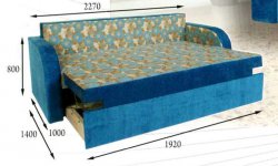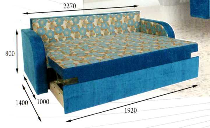 Спальное место: 1920х1400 мм. Механизм трансформации: дельфин. Наполнение: букавая ламель ,синтепон, пенополиуретан, войлок. Наличие бельевого ящика: нет. Цена изделия зависит от категории ткани.
