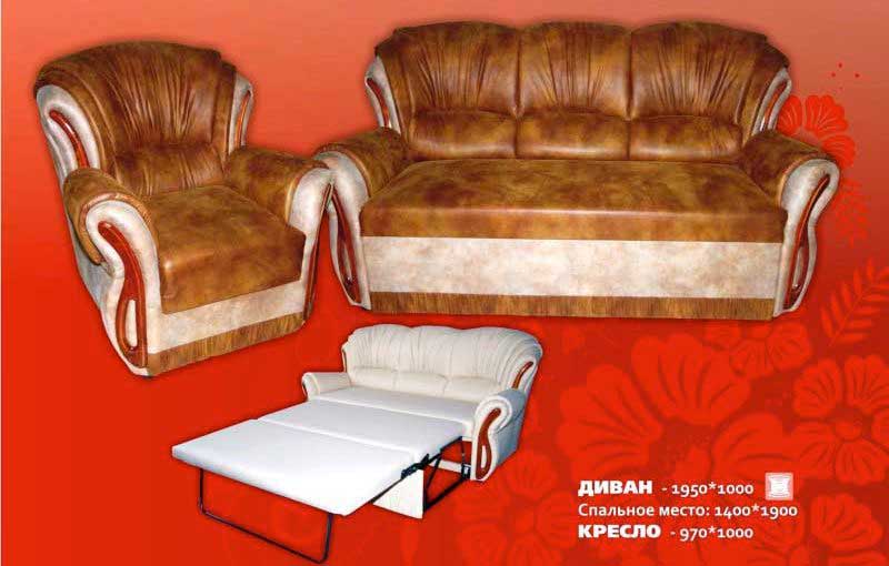 Диван. Габариты 1950мм*1000мм. Спальное место 1400мм*1900мм. Пружинный блок. Раскладка "Французская раскладушка". Кресло. Габариты 970мм*1000мм.