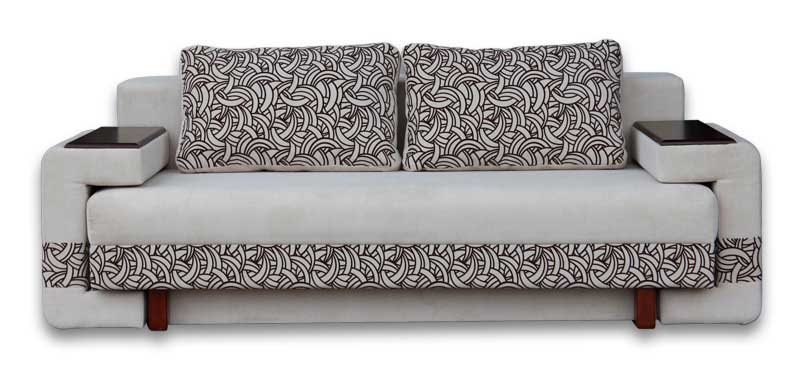 Сиденье и спальное место: пружинный блок, пенополиуретан, механизм трансформации: "Еврокнижка" боковая часть: быльца-стол, размер спального места: 1930х1400, ниша для белья из ламинированного ДСП, в комплекте: 2 подушки.