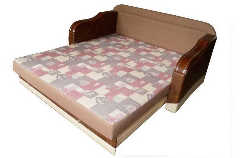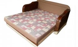 Наполнение дивана : пружинный блок + пенополиуретан плотности 30%.Подлокотники выполнены из пластика.